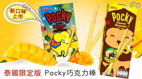 平均每盒最低只要19元起(含運)即可享有【Pocky】泰國版巧克力棒系列10盒/20盒/40盒,口味:香蕉巧克力棒/芒果棒。